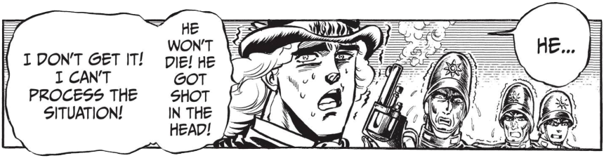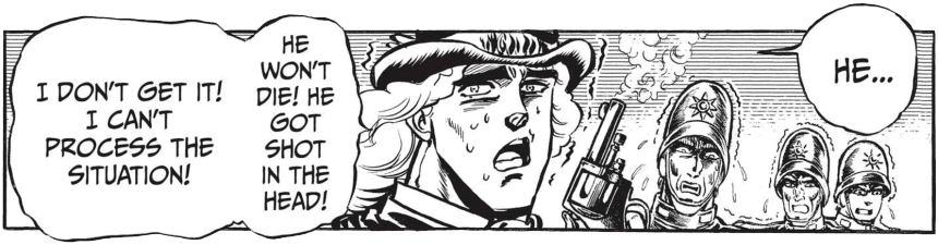 What makes JoJo so unique is no one thing. I am only up to Part 3 and yet as it progresses, the author Hirohiko Araki manages to deftly craft a world in which the more time you spend, the more you become growingly expectant and yet all the more astonished by all of its offbeat devices. It’s wrapped in this in-between sense of familiarity and an “anything can happen” sort of feeling, which makes it a constant thrill to follow, but it does have its limits.