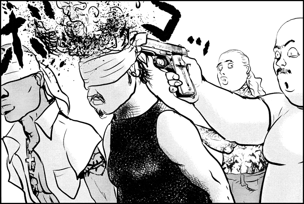 The 40-page oneshot is riotous fun, exhibiting author Sugimoto’s gripping combination of absurd action and comedy. The author lays the groundwork with entertaining exposition, through lively dialogue and characters, before unleashing an explosive scenario that is superb in its hilarity and execution. It is one of the more ‘Western’ based oneshots within the anthology, with Mexican cartel members replacing Sugimoto’s career-long fascination with the yakuza and delinquents.