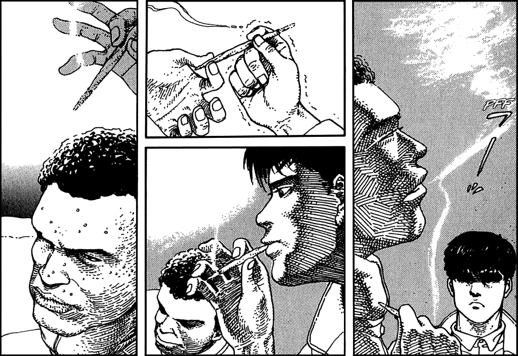 His bold lines and character designs are similar in guise to Katsuhiro Otomo, although it is Keiichi Koike’s shading which gives his artwork its unique flavour. With a multitude of dots and dashes, Koike produces a dramatic portrayal of shadow and definition. This outstanding detail extends also to the author’s background subjects. The party scene in particular is notable for its bustle and attentiveness, where the characters in the background are active and present participants, not only in their actions and movements, but also their dialogue, with intersecting conversations helping to form a genuine and lived-in environment.