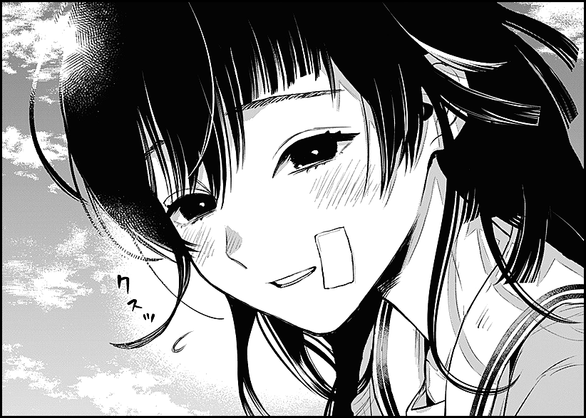 The oneshot, whose title translates to A Girl from the Sky, focuses on the effects of bullying on the victims more so than the bullying itself, with a stark portrayal of the discouraging and confined mindset victims often find themselves in, which can twist and manifest itself in destructive ways. When Roomba-kun learns of Suzume’s allure of a “life-changing” skydiving experience, he tags along, not to encourage her, but in a selfish desire that she won’t find what she’s looking for, hoping that their reclusive days on the rooftop may continue evermore.